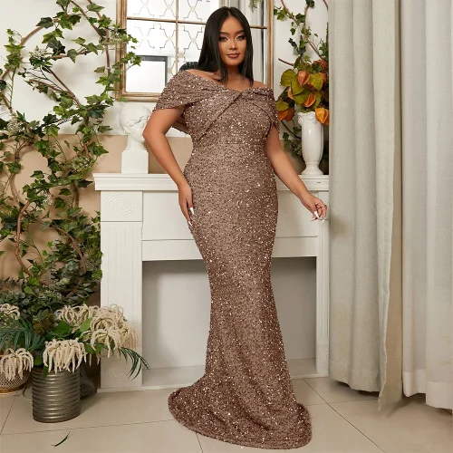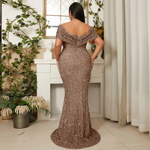 Plus-size Women’s Long Wedding Party Banquet Light Luxury Sequin Evening Dress