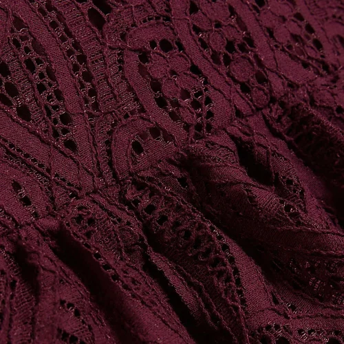 Ladies Short Dress Red Lace Tiered Shift Mini Dress Long Sleeve Crew Neckline Skirts Popular Styles Girl’s Dresses