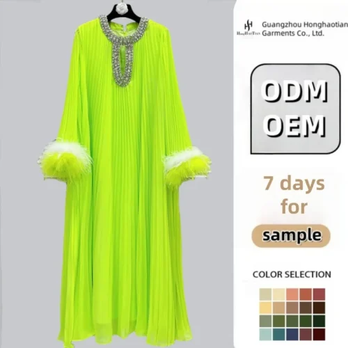 High Quality Diamond O-Collar Maxi Dresses Female Solid Nail Drill Ostrich Hair Sleeve Evening Gown Direct Sales