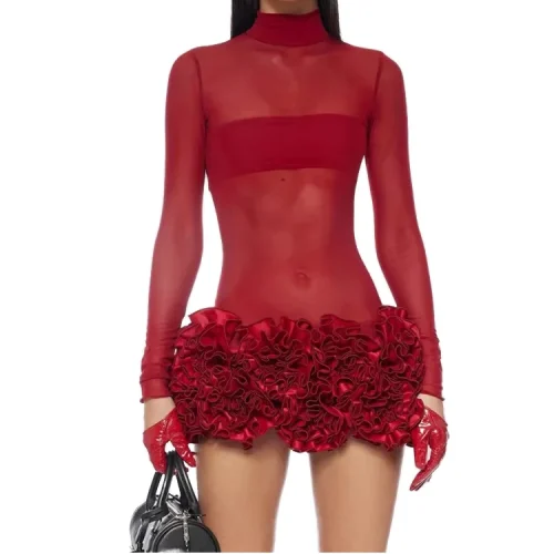 High Quality Woman Fashion Clothes Fancy Mini Long Sleeve Dresses Women Beautiful Sexy Flowers Dress