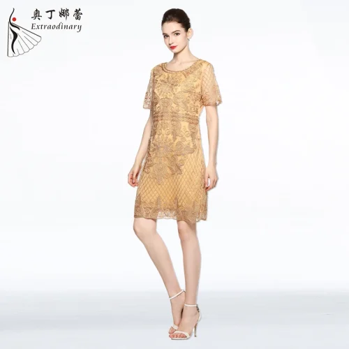 Women Elegant Floral Embroidery Casual Dress Party Bride’s Mother Short Dinner Dresses