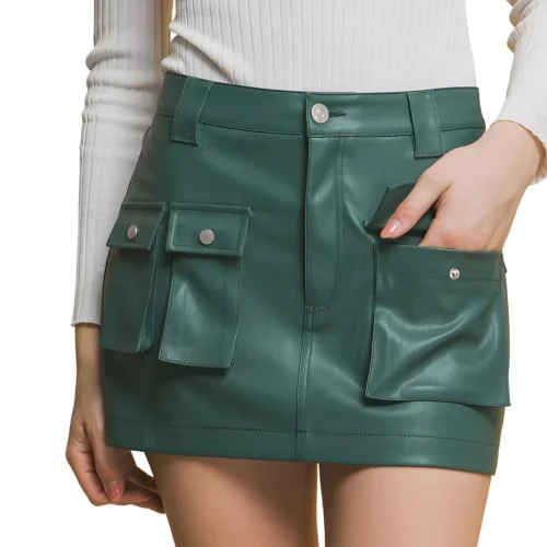 Women Reverie Cargo Button/Zip Closure Genuine Lambskin Leather Skirt Girl Night Club Party Casual Mini Leather Skirt, All Sizes