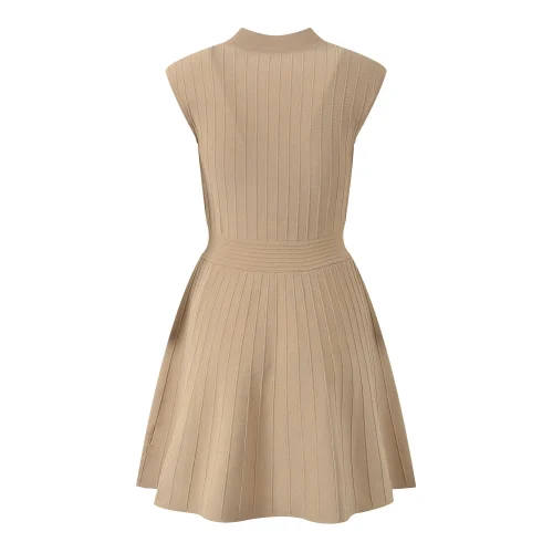 Women Knit Dress Sleeveless Mini Dress V Neck Button Front Slim Fit High Quality Elegant Style Summer Fashion