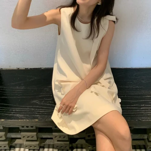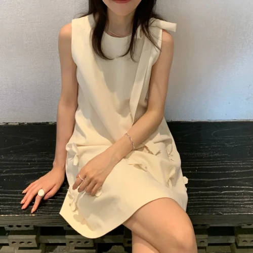 Women Spring Summer Dress Cloth High-End Women’s Sleeveless Flower Dress French Vest Gentle Casual Chiffon Sell Dress