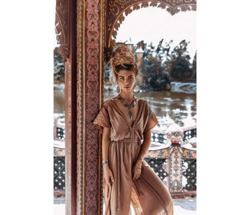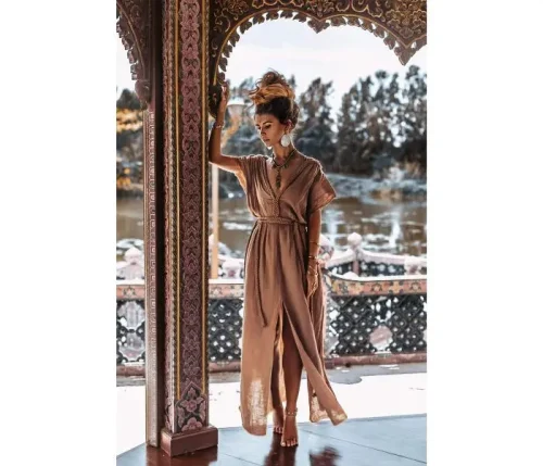 Women Stylish Designer 2022 New Trendy Resort Dresses Boho Hippie Front Slit Linen Elegant Casual Dress