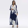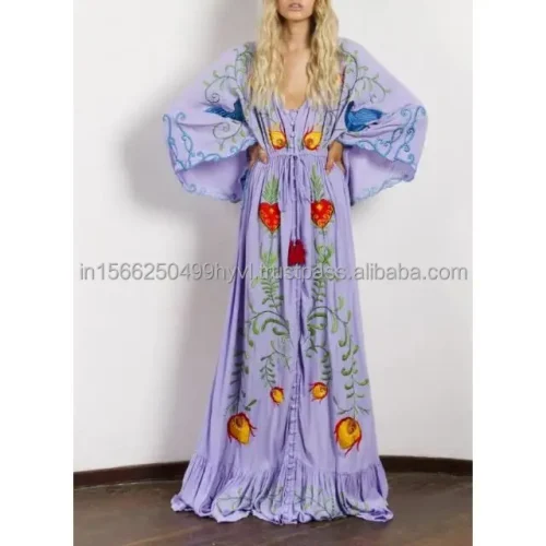 2024 Luxury Long Sleeve Embroidered Women Floor Length V-Neck Casual Long Embroidered Kaftan Dresses