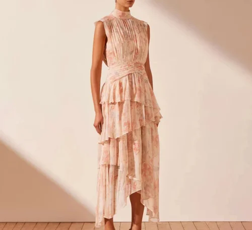 2023 New Summer Fashion Temperament High-end Elegant Dress High Neck Sleeveless Pleated Cascading Casual Dress for Women