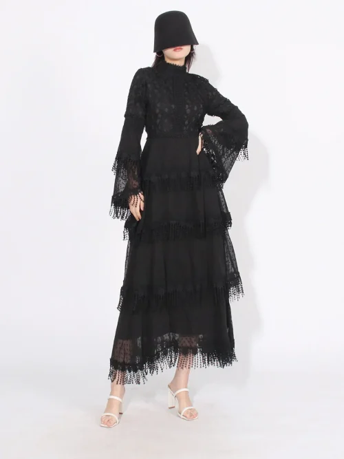 2023 New Arrival Temperament Lace Patchwork Design Women Dress Slimming Waist Maxi Lady Dress