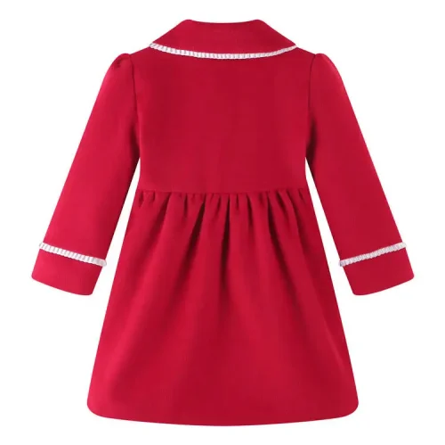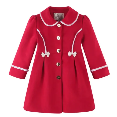 2024 High Quality Cute Red Puffy Wool Mix Dress Coat for Girls for Ages 6 10 12 14 Years
