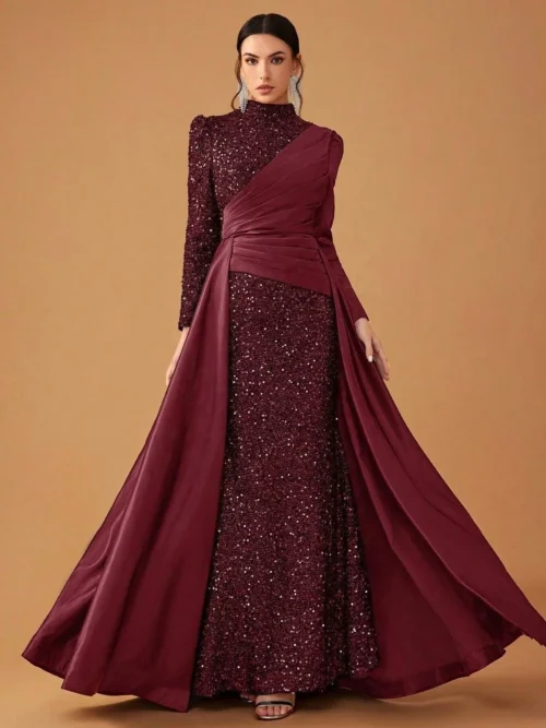 2024 Bettergirl Women New Digital Anti-Static Long Sleeve Elegant Plain Dyed V-Neck Maxi Standard Dresses
