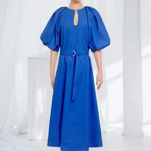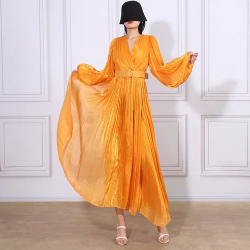 2023 New Simple Temperament Spilt Design Dress DesignSense Long Sleeve Slimming Maxi Elegant Women Dress