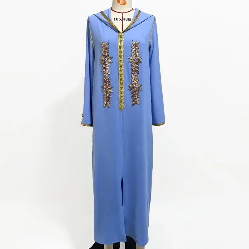 2023 New Fashion Hooded Dress Hand-Stitched Diamond Gold Tube Robe Plus Size Women’s Clothing