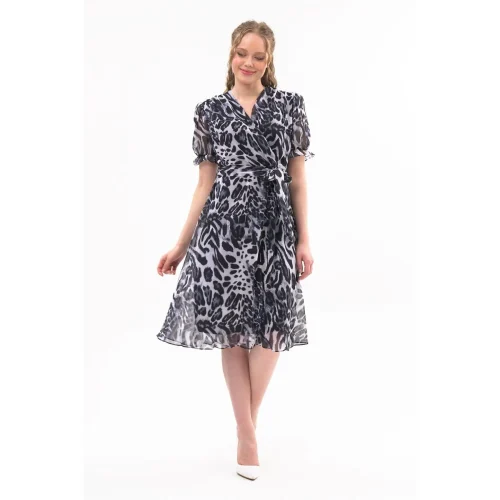 Women’s Leopard Print Double Breasted Midi Chiffon Dress 4431/110 Manufacturer in Turkiye Sexy Casual Wear