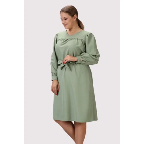 Women’s Linen Casual V Neck Midi Dress Long Sleeve Detailed Gathered Cuff Plus Size 4409/110 Sexy Casual Wear