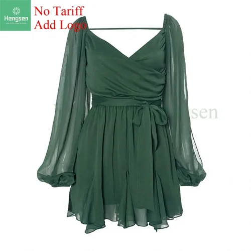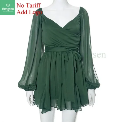 Women’s Long Sleeve Office Ladies Sexy Folding Suspender Ruffle Slim Fit Dress