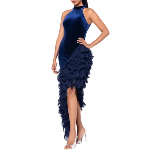 Women’s izable Sleeveless Ruffle Hem Maxi Dress Solid Color Elegant for Summer & Autumn Breathable Front ODM Plain Dyed