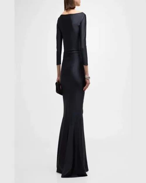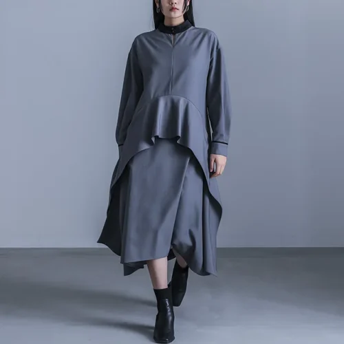 Women’s Mode Fashionable Maxi Dress Long Sleeve Dress Stand Neck Length High Neck Different Material Suit Fabric for Casual Wear