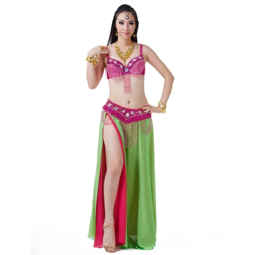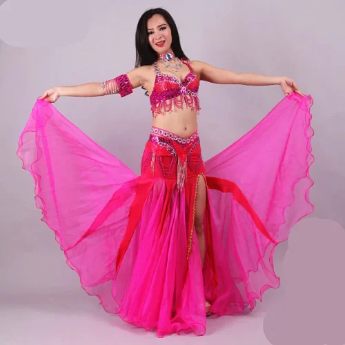 Women’s Sexy Three-Piece Performance Wear Set Belly Dance Bra Skirt Belt Printed Stage Ballroom Dress for Adults and Girls