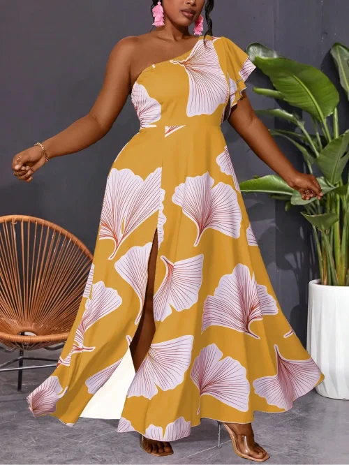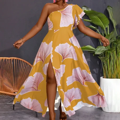 Women’s Summer Maxi Dress Print Breathable Sweet Style Split Digital Print Plus Size Dress