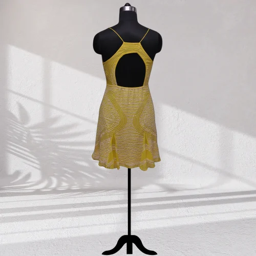 Yellow Halter Neck Bodycon Dress Women Trendy Sleeveless Summer Dress Elegant Fit Flare Casual Beachwear Stylish Cocktail Dress