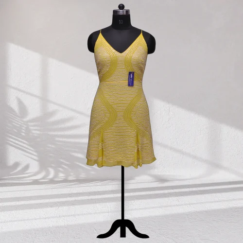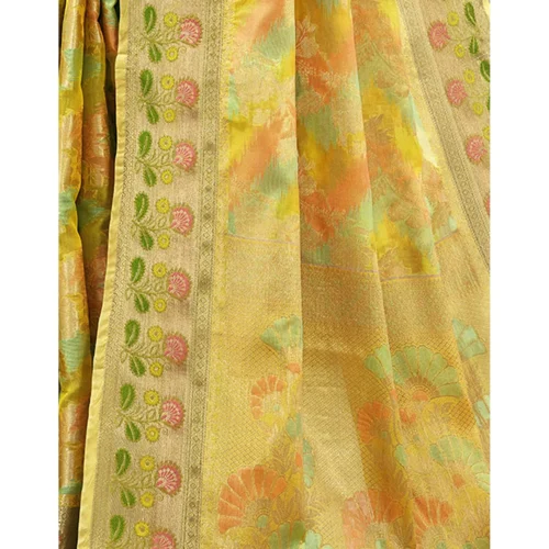 Yellow Banarasi Saree Handwoven Silk Casual Dress with Elegant Woven Design