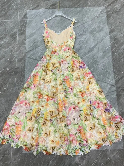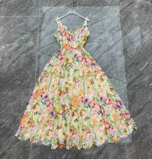 YC Women’s Bohemian Floral Print Summer Dress Spaghetti Strap V-Neck Colorful Mesh High Street Beach Party XL Ruffles