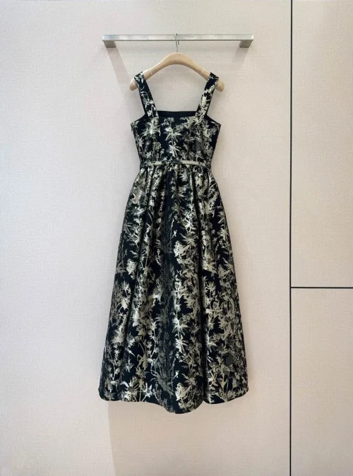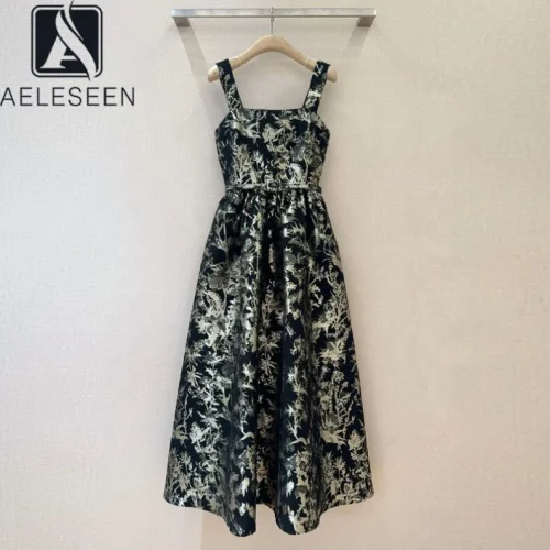 YC Women Spring Summer Dress Butterfly Jacquard Square Collar Spaghetti Strap Fashion Black Ball Gown Evening Dress