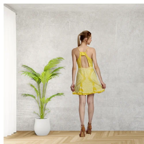 Yellow Halter Neck Bodycon Dress Women Trendy Sleeveless Summer Dress Elegant Fit Flare Casual Beachwear Stylish Cocktail Dress