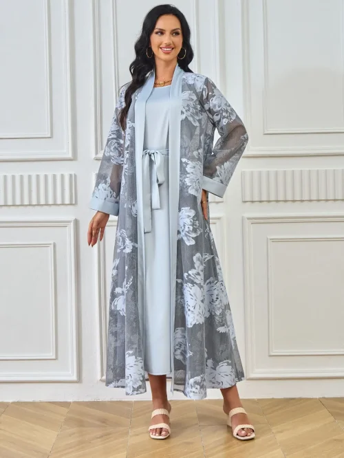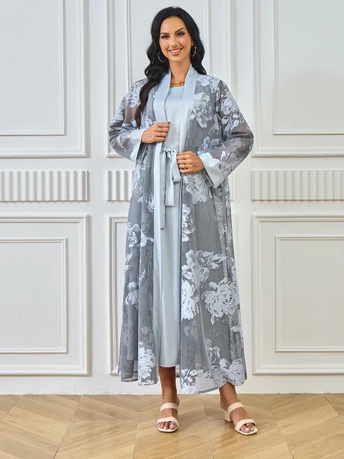 Yilingna Middle East Cross-border Muslim Saudi Abaya Gown Floral Casual Cardigan Two-piece Women’s Dress