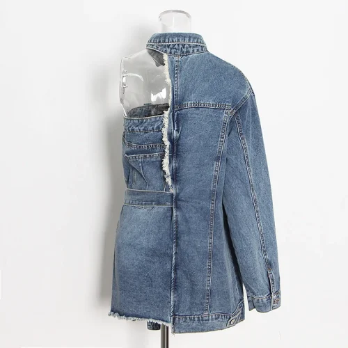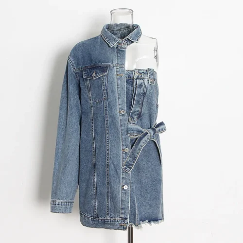 ZHEZHE Fall Winter Sexy Casual Sexy One Single Sleeve One Piece Irregular Jean Skirts Mini Denim Dress Women’S Skirt Dresses