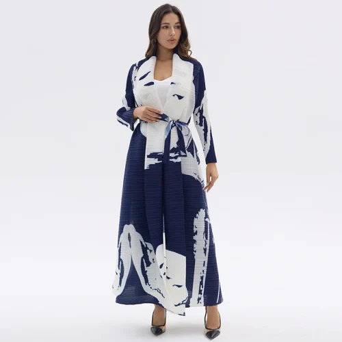 ZiFeng Miyaki Dress Pleated Autumn and Winter New Printed Cardigan Muslim Women’s Outer Shawl Dress
