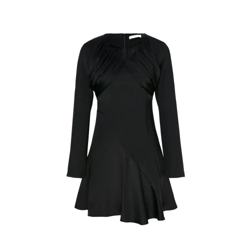 5951-XUJO-Products Long Sleeve Ruched Elegant Black Solid Breathable Woman Casual Dress Plus Size Women’s Clothing