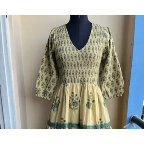 Beige Bohemian maxi Dress Block Print Indian Tunics Hand Dress Indian Cotton Long Gown Indian Printed Dress