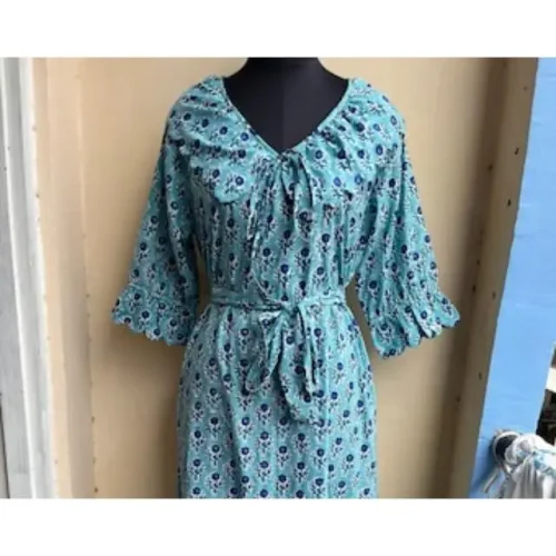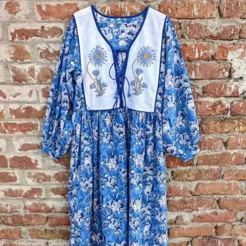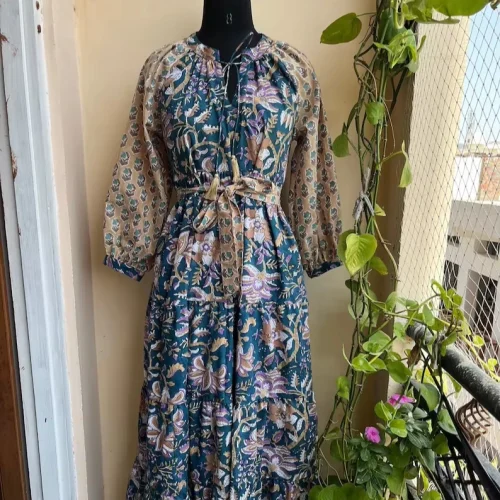 blue Hand Block Printed Dress Block Print Indian Tunics Hand Dress Indian Cotton Long Gown Indian Printed Dress