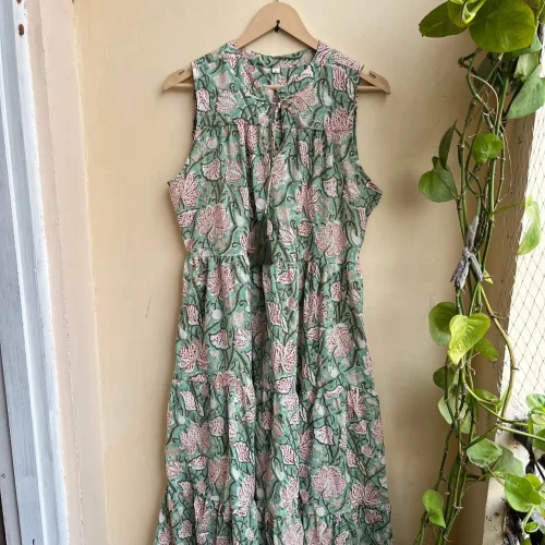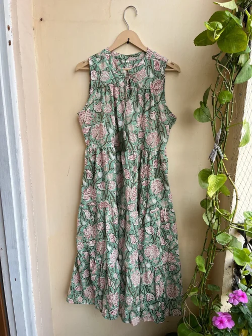 Boho Dress Indian Cotton Long Gown Hand Block Printed Dress Indian Floral Print summer wear women Sleeveless Cotton Summer Dress