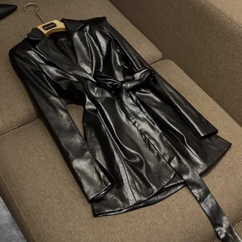 Elegant Style Designed Notched Long Sleeve Blazer Women Office Casual Wear Lady Short Mini Slim Dress With Belt