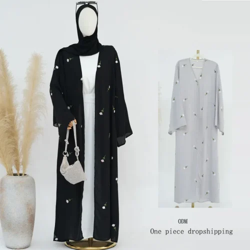 Elegant Versatile Open Robe for Women Autumn/Winter New Style Embroidery Viscose Material Popular XXL Muslim Abaya for Weddings