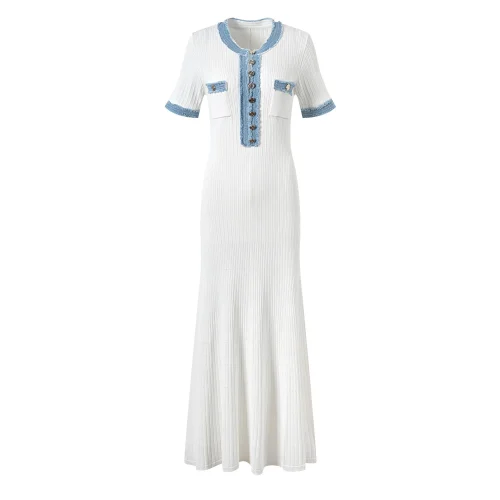 Elegant Short Sleeve Bodycon Ladies Fashion Single-breasted Maxi Dresses 2024 Spring Summer Knitted Bettergirl O-neckline Women