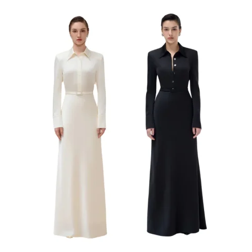 Fancy Design Dresses Women Lady Elegant Long-Sleeved Audrey Day Dress Linen Mison Satin Fabric Woman Clothes Sustainable Fashion