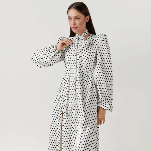 New Arrivals Women Casual Dresses Dot Printed Dress Puffy Long Sleeve Elegant Dress