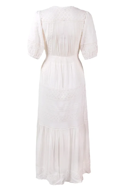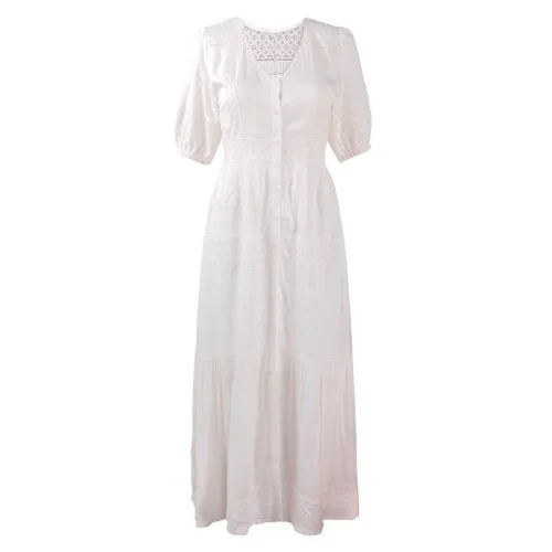 New Korean Fashion Long Dress 2023 Summer Ladies V-Neck Hollow Out Embroidery Button Front Short Sleeve Casual Long Beach Dress