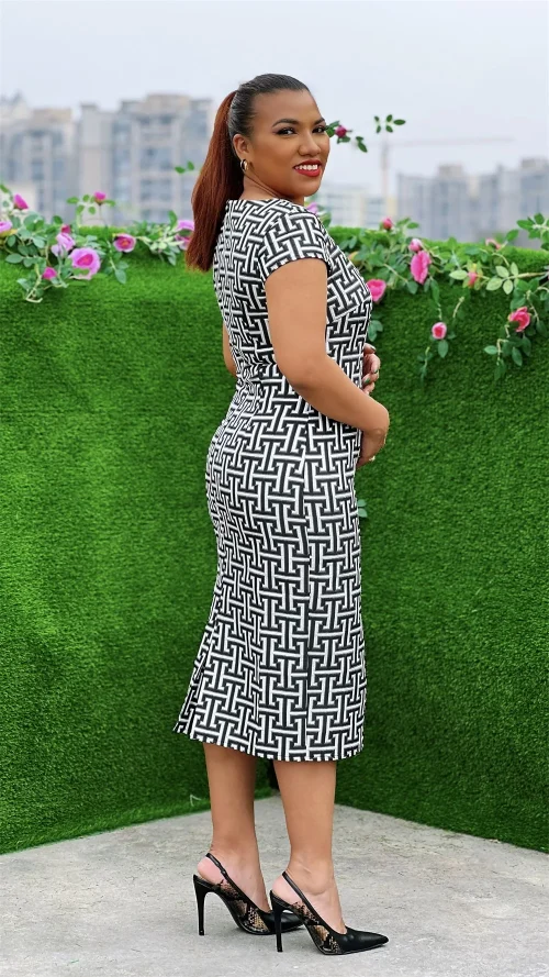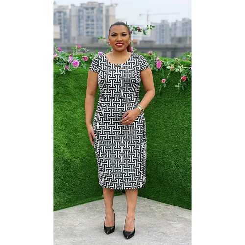New Ocasional Women Short Sleeve Casual Dresses Elegant Flora Church Mother Dresses Suit