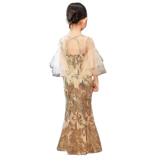 New Golden Sequin Embroidered Mermaid Dress Girls Evening Dress for Birthday Party Host Performance