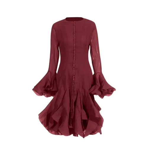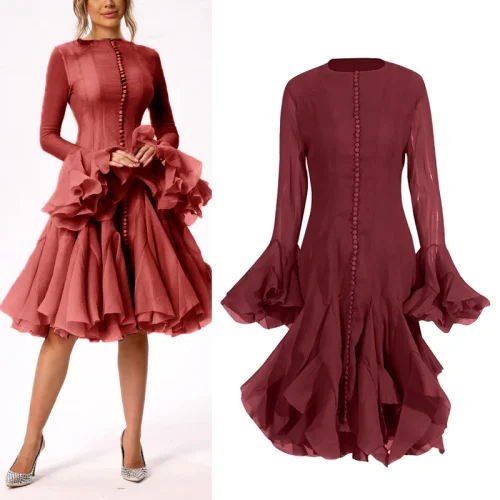 New Style Fairy Round Neck Ruffled Trumpet Sleeve Evening Gown Elegant Dresses Women Casual Dress