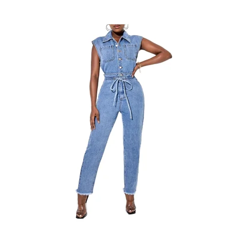 New Stylish Women’s Denim Jumpsuits Pockets Washed Jeans Rompers Plus Size Fashion Denim Jumpsuit