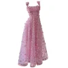 2023 Fashion Elegant Handmade 3D Floral Halter Fitted Maxi Evening Party Dress Casual Dresses in Plus Size Chiffon Fabric