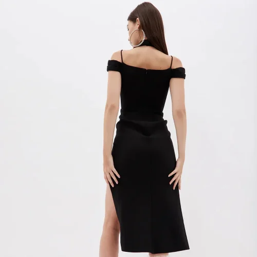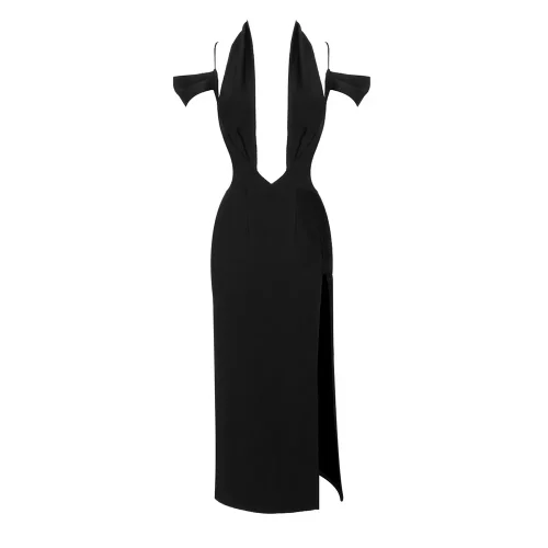 2023 New Black Hollow Hanging Neck Open Elegant Casual Comfortable Women’s Senior Dress