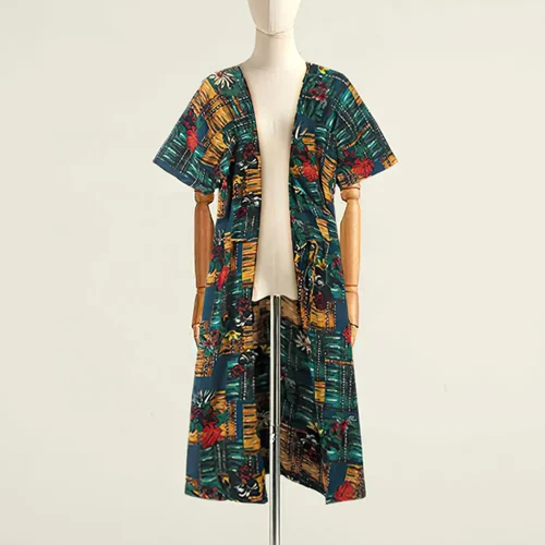 2023 100% Real Silk Boho Caftan Dress Summer Beach Floral Printed Long Kimono Women Bikini Kaftan Elegant Silk Chiffon Cover up