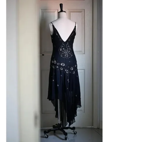Vintage Elegant Sequin Beaded Sheath Dress Sleeveless Tea-Length O-Neck Poly Mesh Fabric Embroidered Print Formal Party Casual