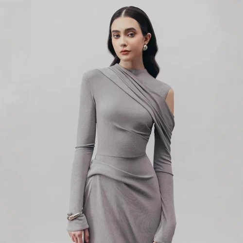 Women’s Boutique’s New High-quality Ramadan Elegant Party Dresses with Irregular Collar and Long Sleeves